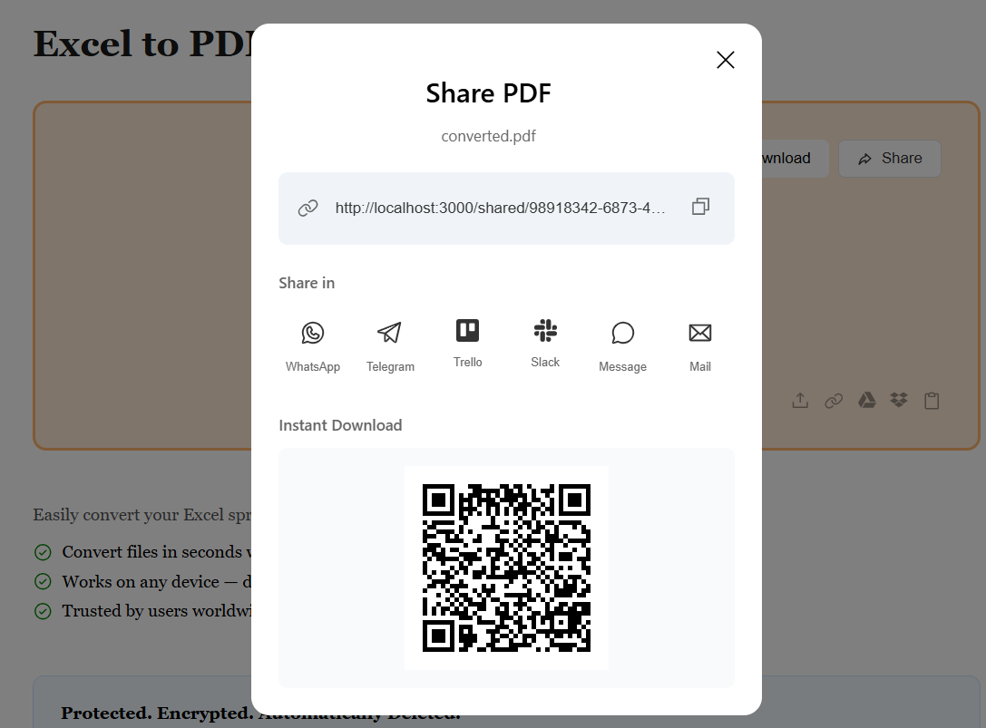 After conversion, your Excel spreadsheet is transformed into a professional PDF document. Preview the result and hit Download to get your file. Your PDF is ready to share, print, or archive — with all data and formatting intact.