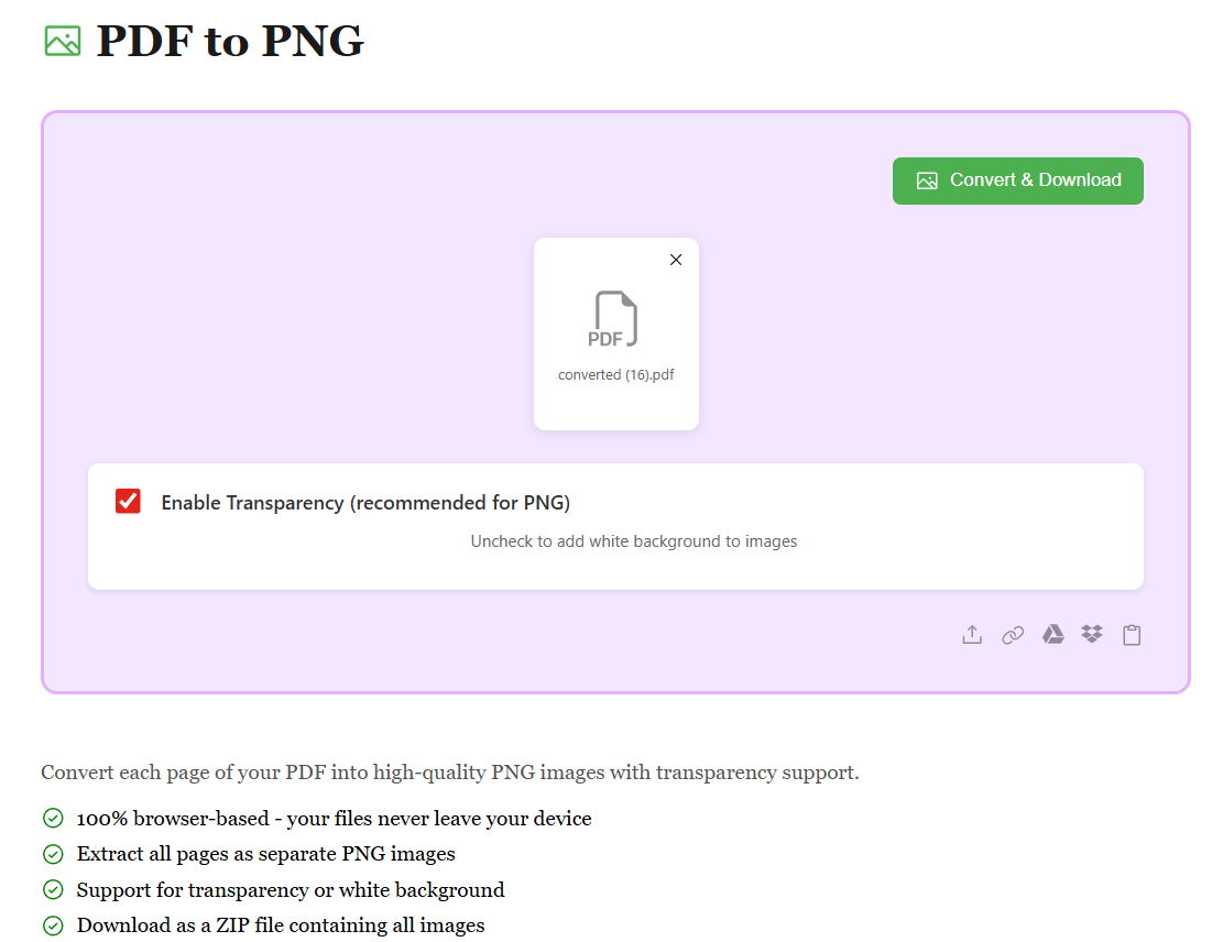 Convert each page of your PDF into high-quality PNG images with transparency support.