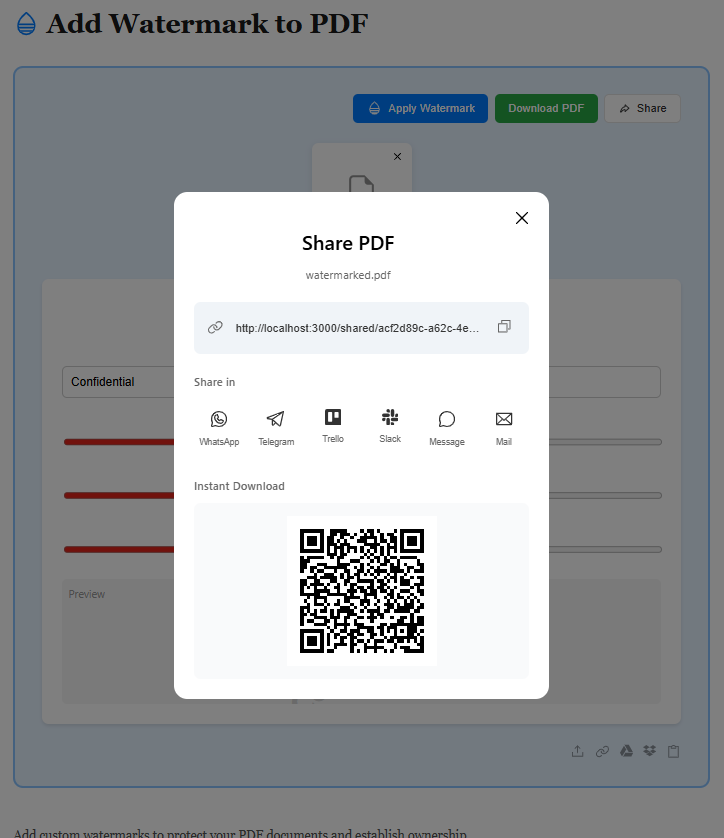 After customizing your watermark, hit the Apply button and your watermark is instantly added to all pages. Preview the result and download your file. Your watermarked PDF is ready to share, publish, or distribute — with your brand or copyright protection clearly visible.